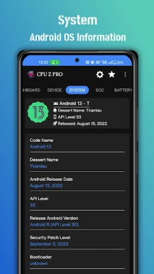 CPU-Z Pro is an simple mobile application that reports your device's CPU and system information, combining a sleek interface with a plethora of features.